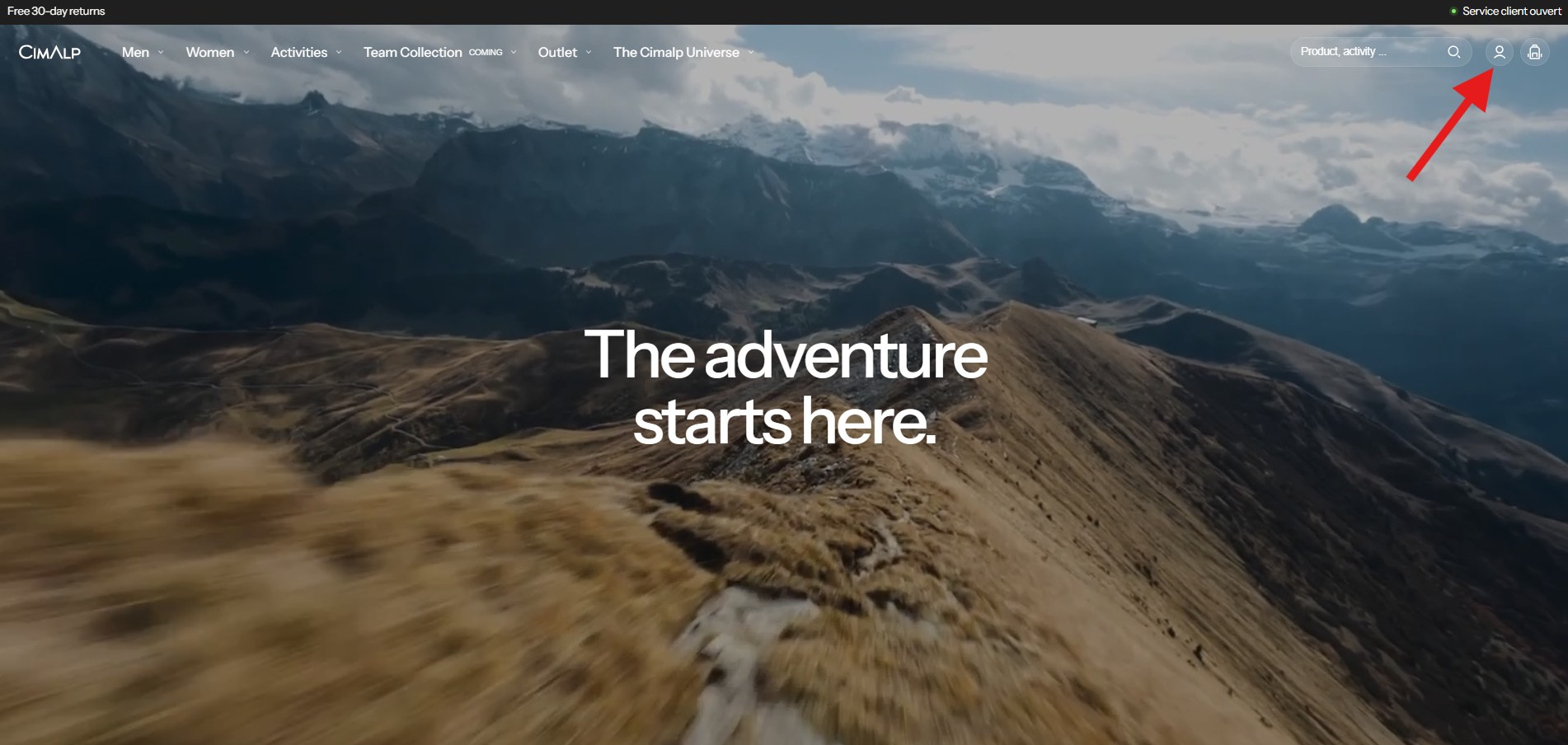 Klicken Sie auf das „Konto“-Symbol oben rechts auf der Website.
